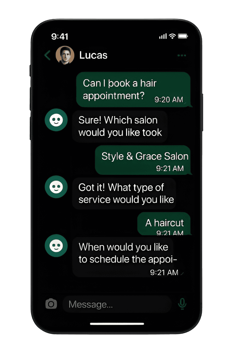 De AI Salon Assistent maakte het boeken van mijn afspraken zo makkelijk! Het ging snel en hij onthoudt mijn voorkeuren.